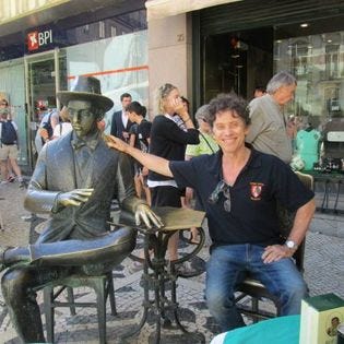 The Comandante in Lello’s Bookshop, Oporto, and with Fernando Pessoa in Lisbon
